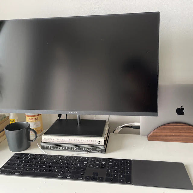 Reclaim your desk with our solid wood vertical laptop stand. Designed to save valuable space and create an organized workstation, this stand is the perfect dock for your device. A soft-lined slot protects from scratches while a non-slip base provides stability. Handcrafted in the USA, it brings a simple, natural elegance to the modern workspace.