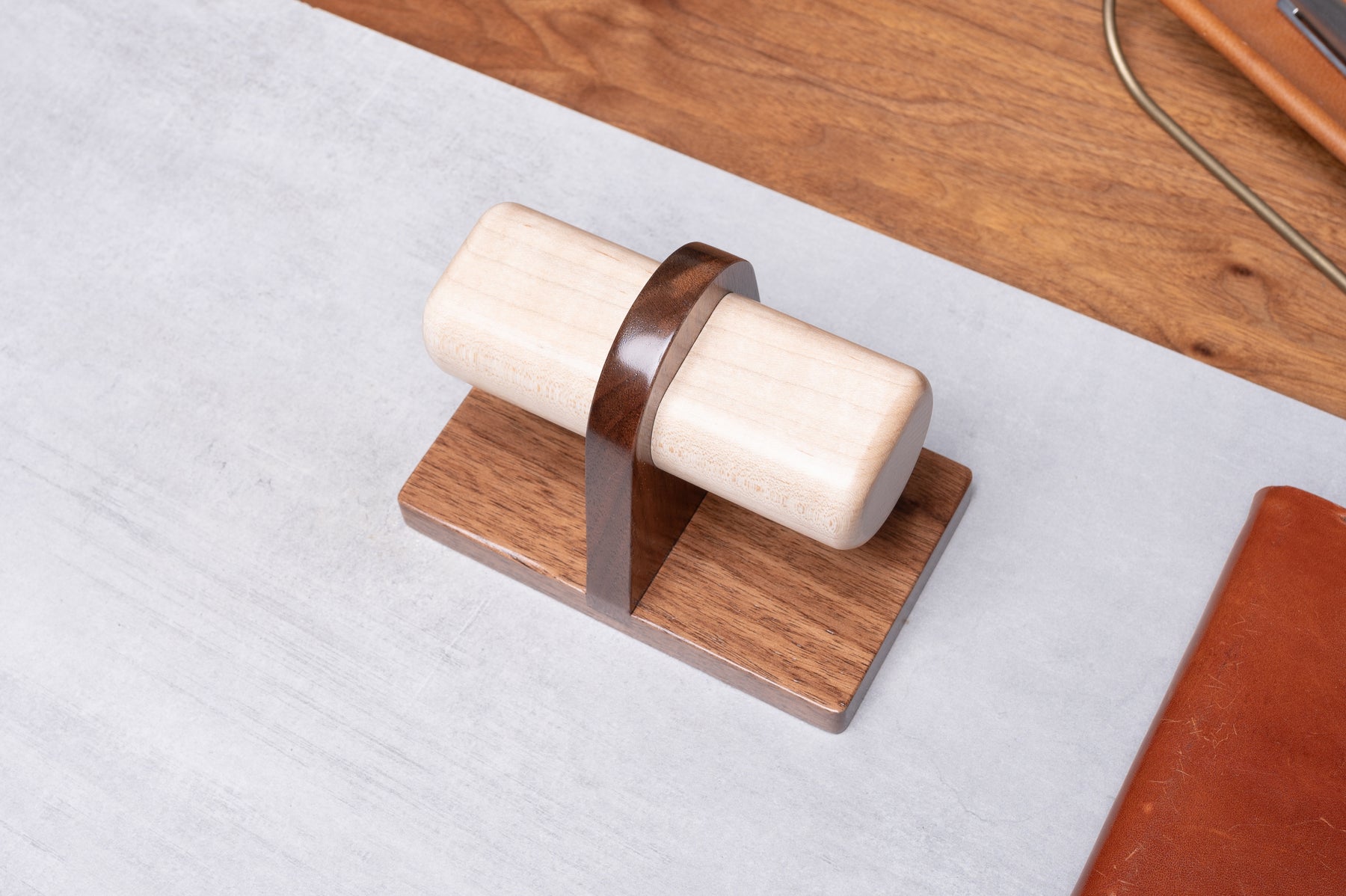 A dedicated home for your essential accessories. The Timestand M is a minimalist stand designed to hold two watches or a collection of bracelets. Handcrafted from solid American hardwood, its simple elegance brings a sense of intention to your dresser or nightstand. Personalize it with an engraving for a uniquely meaningful touch.